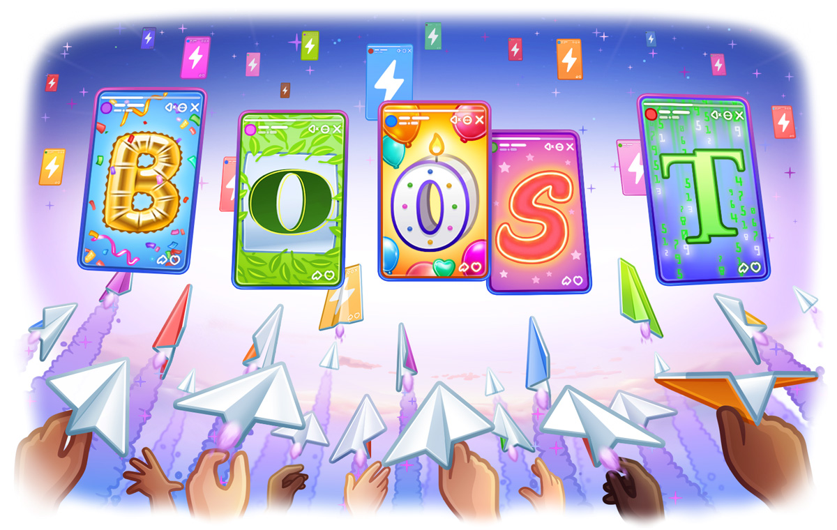 Kemaskini sebelum ini meraikan 10 Tahun Telegram. Dengan kemaskini ini, saluran juga boleh mula mengepos stori, terima kasih kepada sistem tingkat baru. Stori kini mempunyai stiker reaksi, dan opsyen untuk tambah muzik anda sendiri. Kami juga menambah aturan Sekali Lihat kepada media musnah sendiri, amaran log masuk lebih baik dan lagi.