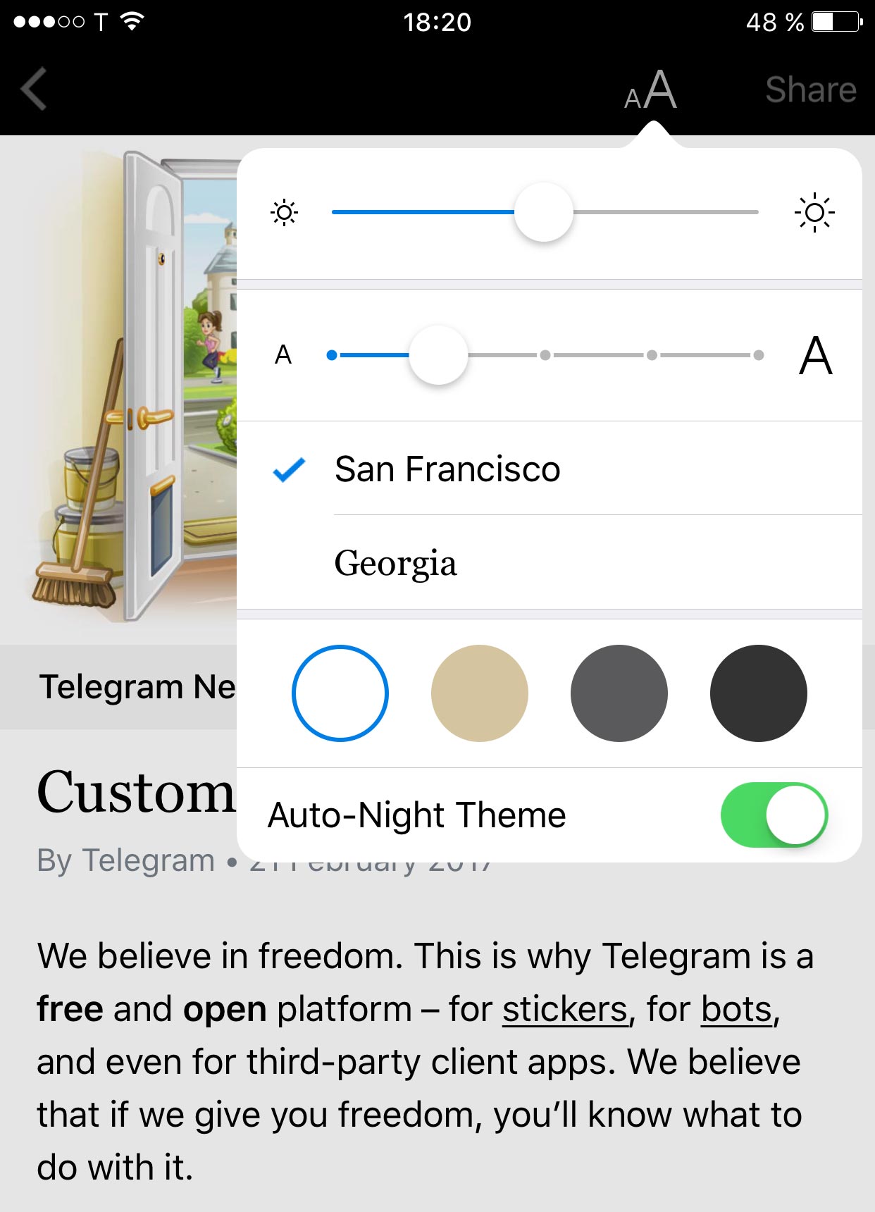 Rejoice, brethren and sistren, the day has come! Instant View is now ready to support thousands of websites, including your favorite ones. Soon you will no longer need to launch a web browser to view any article shared with you on Telegram, because today we are launching the Instant View Platform.