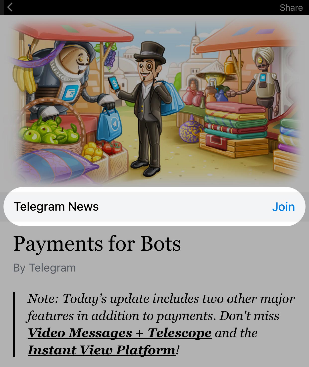 You can also direct users who view Instant View pages from your site to join your channel on Telegram (more on how to do that):