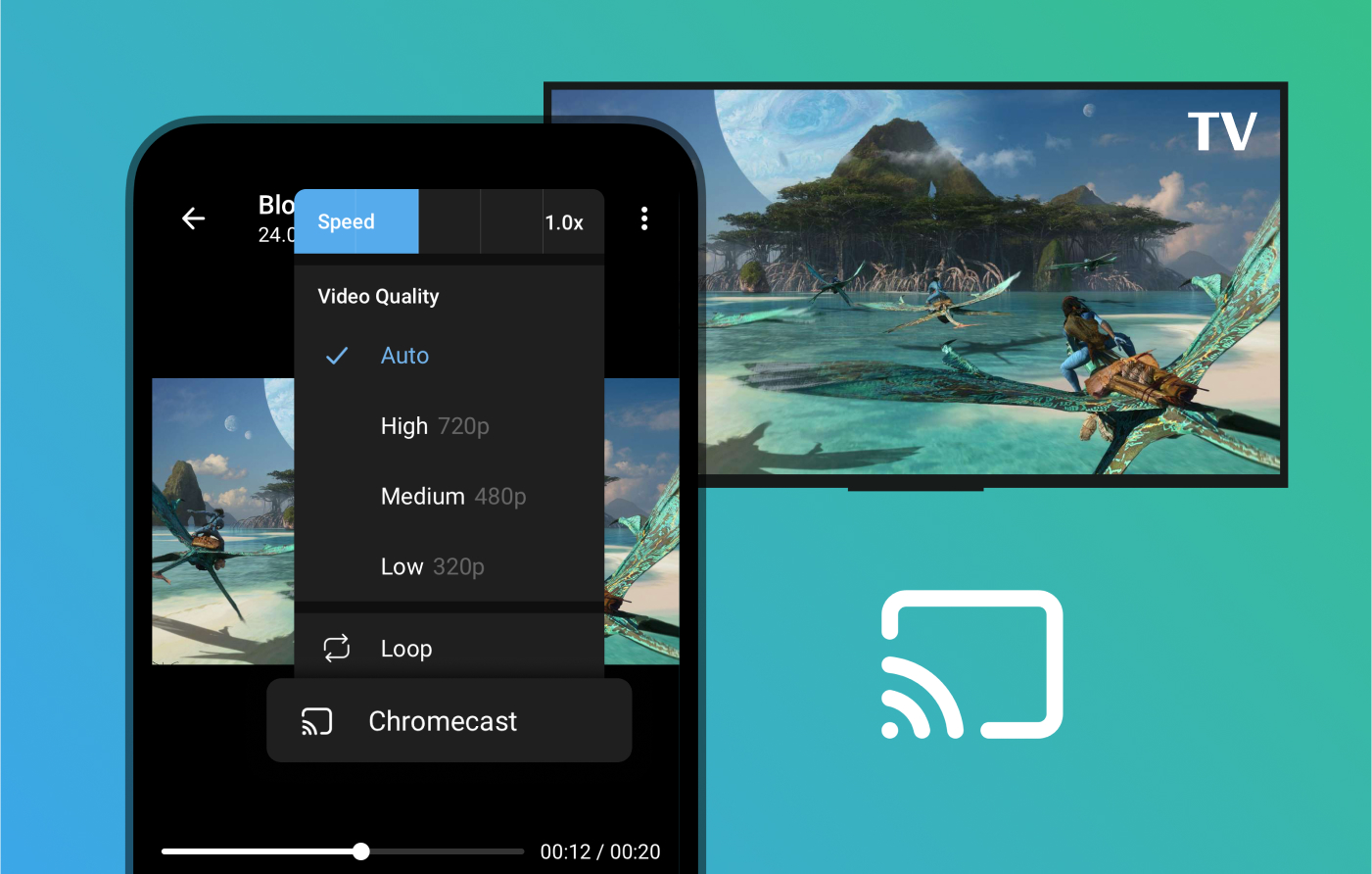 На Android появилась возможность транслировать видеозаписи на устройства с поддержкой Chromecast прямо из приложения. Теперь Вы можете ощутить все преимущества большого экрана в любой ситуации — будь то совместный просмотр мемов с друзьями или показ важной видеопрезентации на деловой встрече.