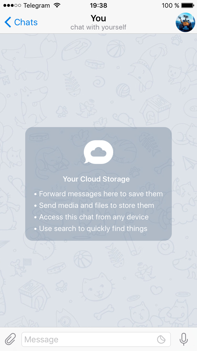 You can also access everything you send to the storage chat on any number of devices you connect, so this can serve as a simple but effective way to replace services like Dropbox right inside your messenger.